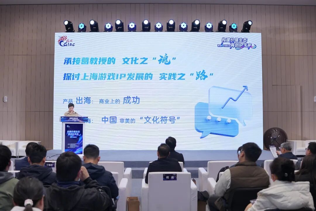 在论坛的主旨发言环节,上海市网络游戏行业协会秘书长丁晓玲发表了题为"从产品出海到符号出海:上海游戏IP的全球化构建之路"的演讲,系统阐述了协会推动游戏IP高质量发展的核心思路。